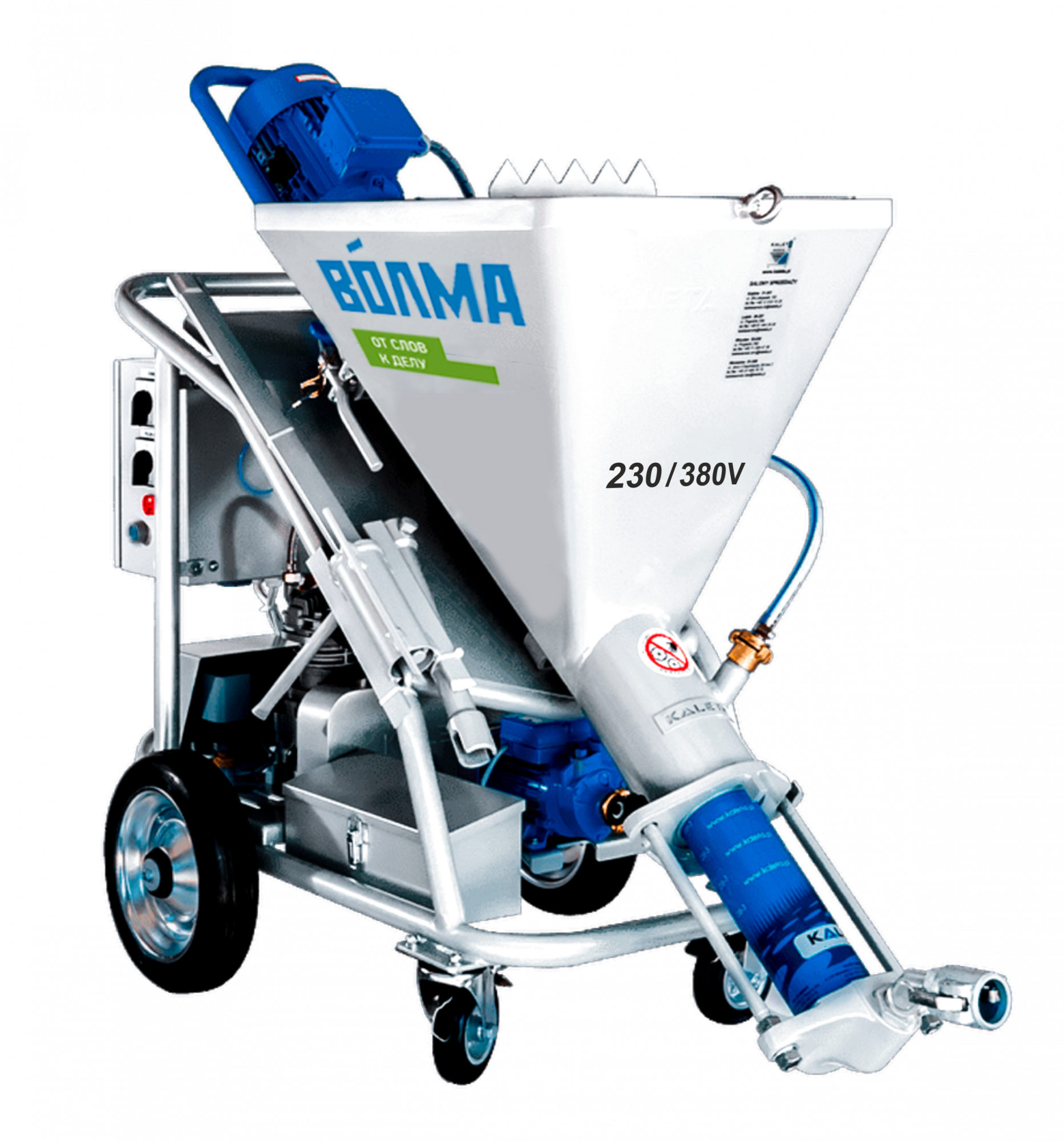 Штукатурная станция Калета 4 Multivoltage 230 / 400 V - штукатурный агрегат с питанием от 220 вольт и 380 вольт. Благодаря возможности переключения источника питания, штукатурную машину Kateta-4 Мультивольтажная можно использовать в ситуациях, когда вы не можете подключиться к трехфазному источнику питания или когда однофазное питание не определено.